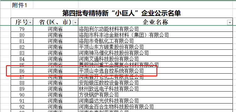 喜報(bào)!平頂山中選自控系統(tǒng)有限公司入選國家級(jí)專精特新“小巨人”企業(yè)名單